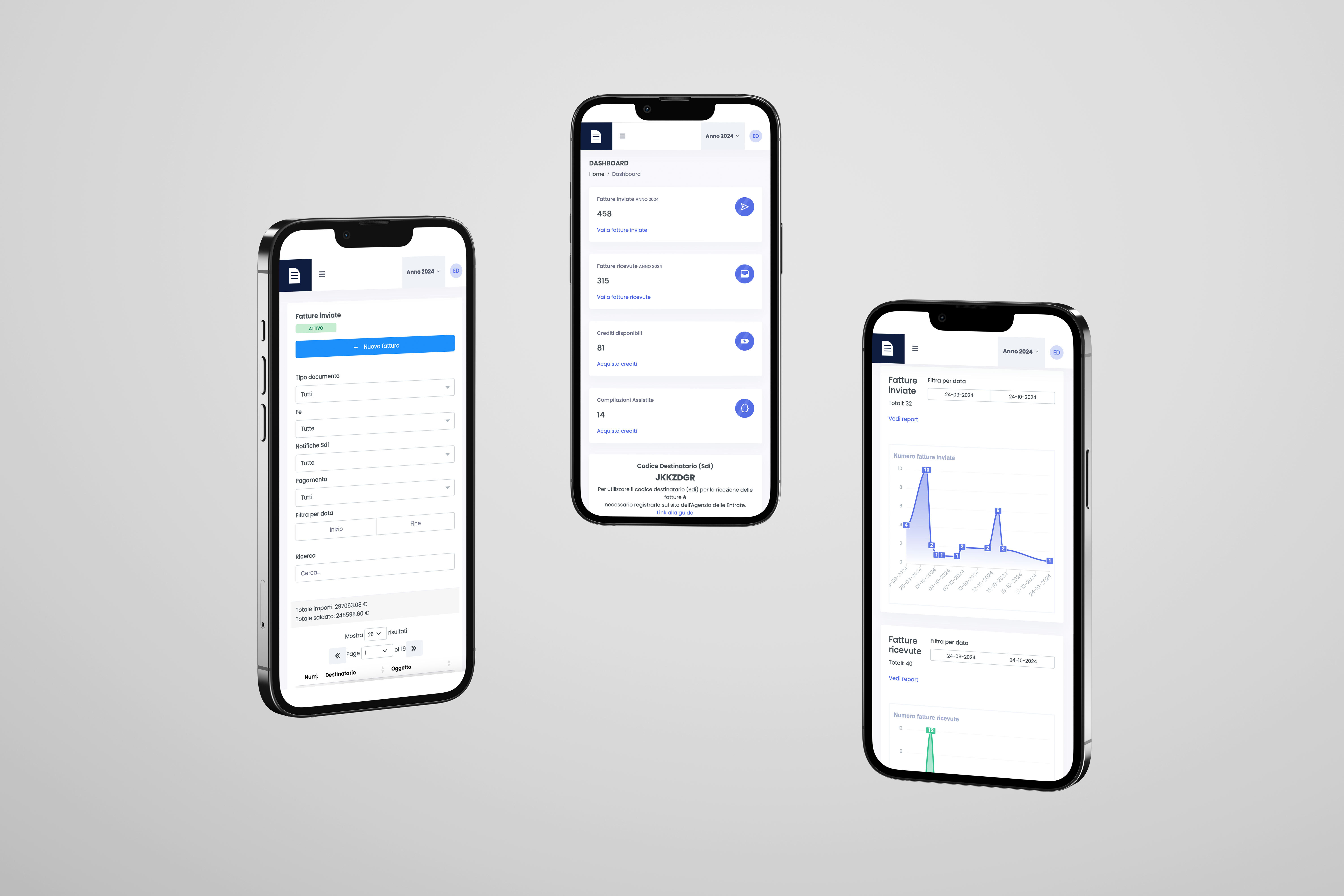 Abbiamo curato l’ideazione del brand, la realizzazione del sito web e lo sviluppo del backend integrando funzionalità di creazione dell’anagrafica, emissione della fattura, processo di invio all’AdE, ricezione di fatture passive, conversione da xml a pdf e gestione delle notifiche.
